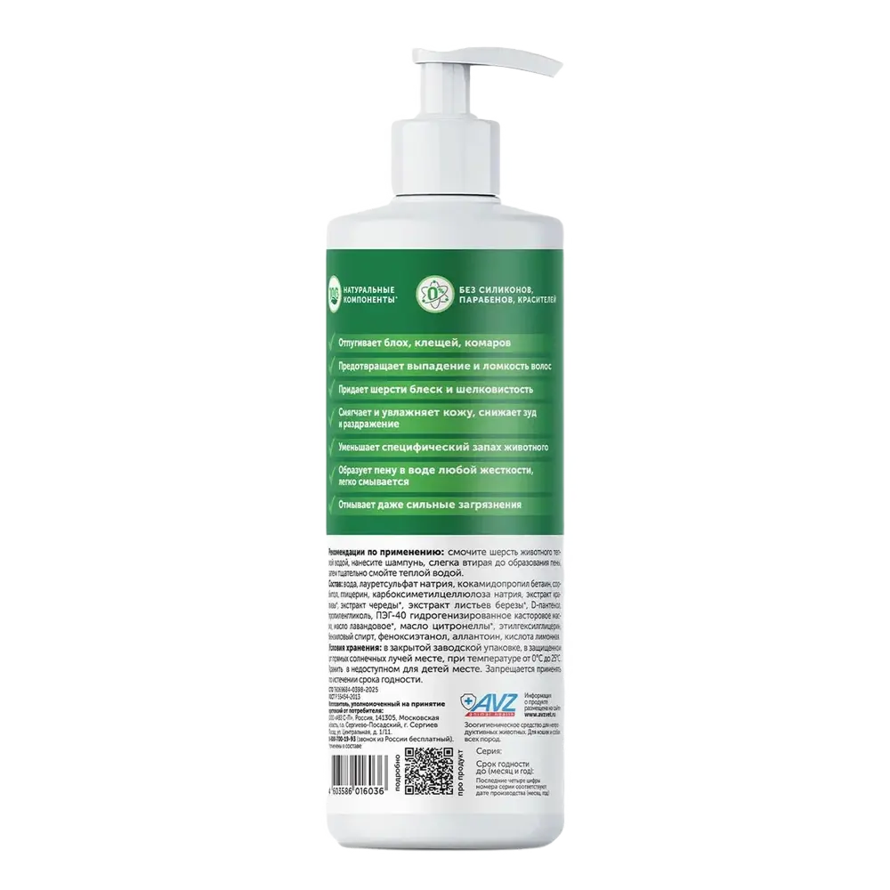Формула дополнена аллантоином — успокаивающим и восстанавливающим компонентом для чувствительной кожи щенков и котят. Экстракты крапивы, берёзы и череды укрепляют шерсть. D-пантенол и глицерин удерживают влагу и защищают кожу. Безопасен для беременных и лактирующих самок.